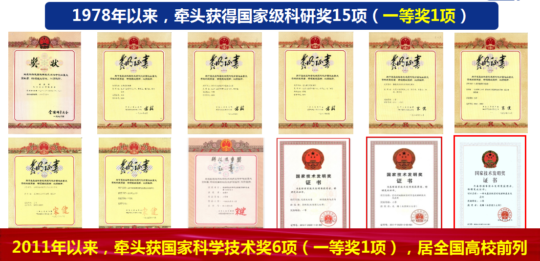 1978年以来,牵头获得国家级科研奖15项(一等奖1项);其中,2011年以来牵头获得国家技术发明奖一等奖1项、二等奖5项。