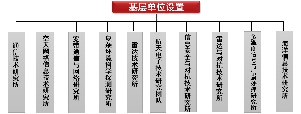 学院始终坚持瞄准国家/国防重大需求和世界科技前沿,巩固国防科技优势,不断加大基础研究投入。在不同时期均产生出技术引领和带动作用显著的代表性科研成果。曾创造了我国科技史上多个“第一”:第一台电视发射接收装置、第一部低空测高雷达、第一部星载空间目标测量雷达等。