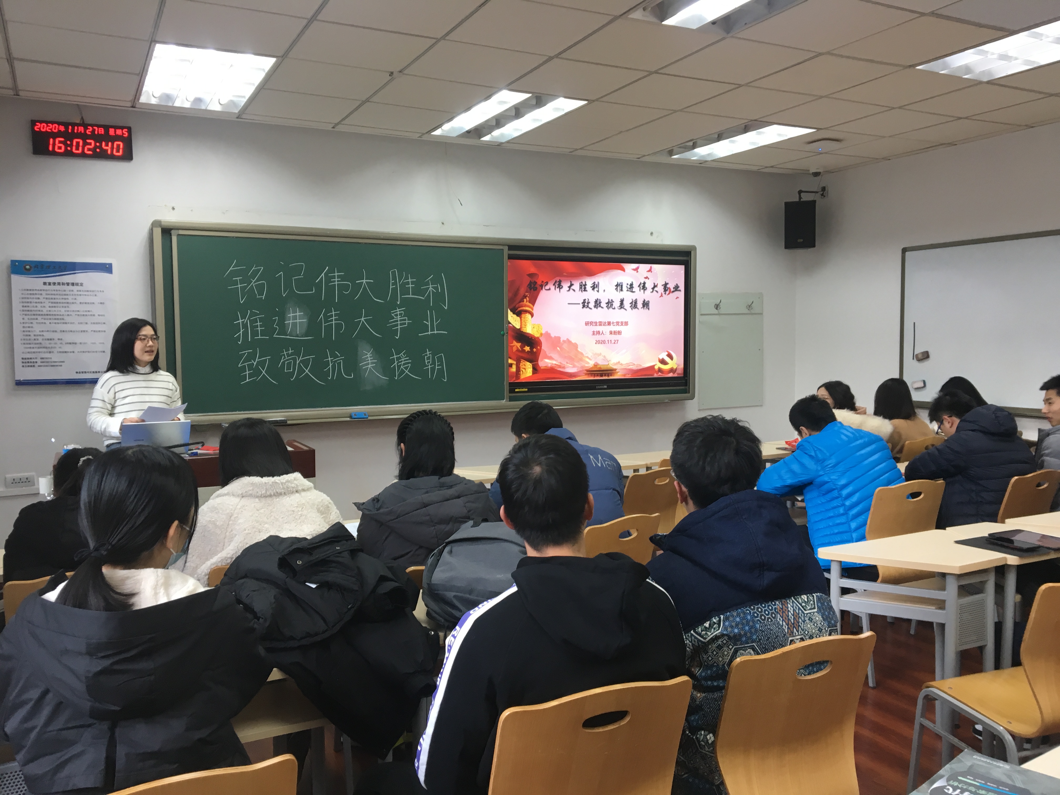 党团支部共建开展学习实践。在学习五中全会精神后,更加深入了解我们党领导国家取得的伟大成就,为引导师生铭记伟大胜利、捍卫和平正义。在组织系统理论学习的基础上,于11月19日组织师生参观《纪念中国人民志愿军抗美援朝出国作战70周年主题展览》,将“四史”教育与五中全会精神学习相结合,将爱国与爱校相结合。