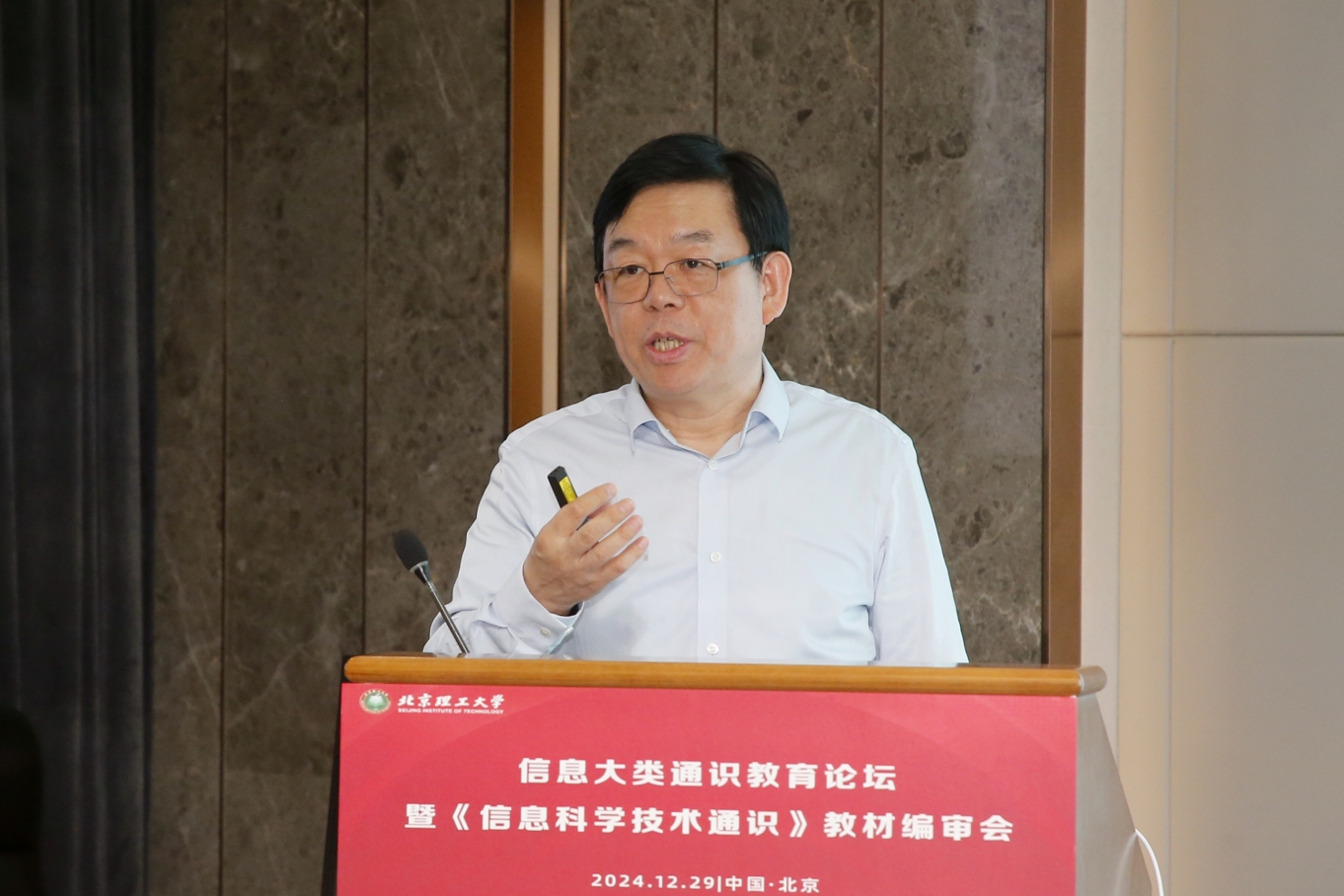 随后,编著委员会主任委员、网络安全学院院长安建平教授围绕《信息科学技术通识》教材的形成历程与设想,回溯课程源起、讲述动议初衷、分享讲授经验、详解撰写过程,擘画未来设想;生动阐释了编委会成员理论与实践结合,以匠心守望教育初心的坚定信念与不懈追求。
