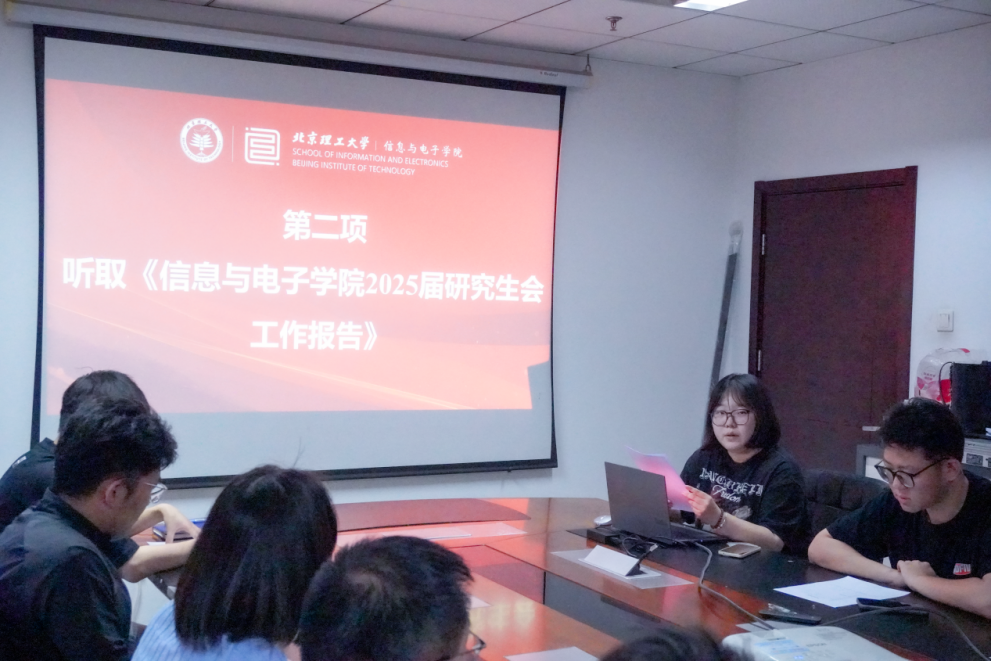 会议伊始,武婧赫做题为“赓续红色血脉,勇担时代重任,领航信息未来,在建设中国特色世界一流大学的新征程中奉献青春力量”的学院2025届研究生会工作报告(以下简称“报告”)。报告从文体领航、心理健康教育、党建铸魂、全维服务创新四个方面系统回顾了学院研究生会过去一年的工作成效。报告对学院研究生会未来的工作进行展望,希望学院研究生会能够坚持创新驱动,打造“精准服务型”“全面育人型”“开放创新型”研究生会,牢记服务宗旨,努力成为广大同学心目中“接地气”的“自家人”组织。