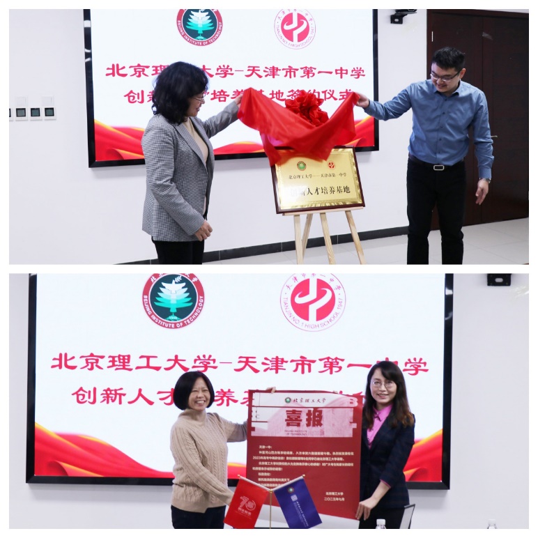 双方代表共同为永利集团3044欢迎你-天津市第一中学“创新人才培养基地”揭牌,并赠送招生喜报。