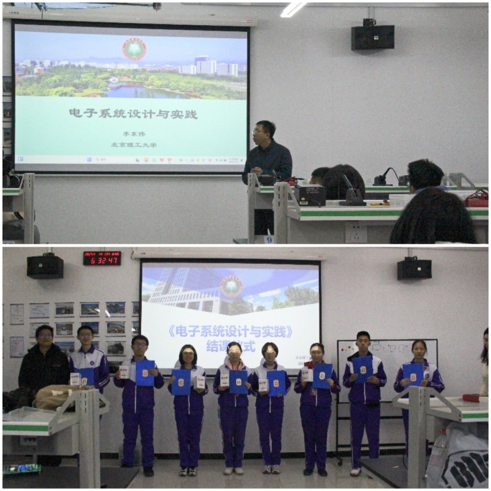在《电子系统设计与实践》实验课堂上,永利集团3044欢迎你专任教师李东伟深入浅出的为学生讲授电子信息基础知识,全体师生积极参与到实验活动中。课后,授课教师为顺利结课的南开中学学子颁发结课证书。